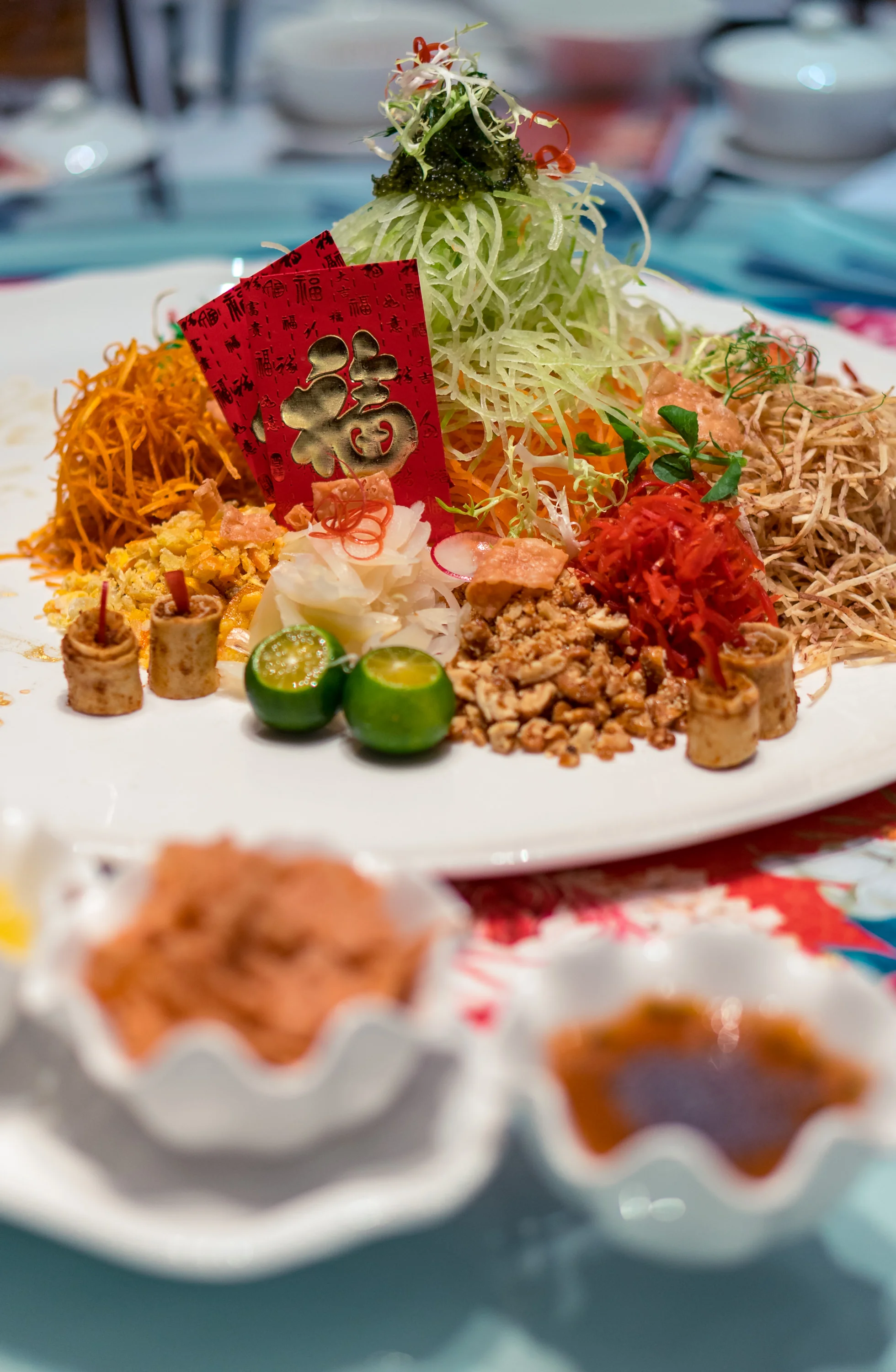 Aside from the thoughtful disposable place mats that comes along with orders of Yusheng—festive, and makes the mess after a breeze to settle—their homemade sauce of fresh passionfruit, roselle juice and plum sauce lend a delightful harmony of sweet-sour tones.